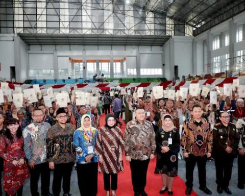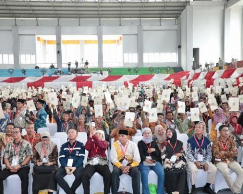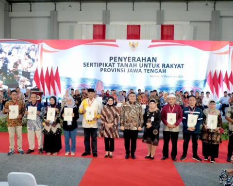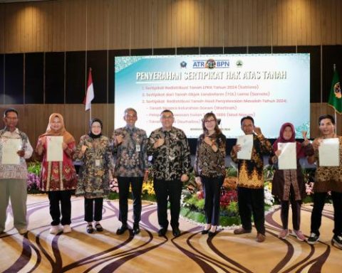 Balikpapan – Menteri Agraria dan Tata Ruang/Kepala Badan Pertanahan Nasional (ATR/BPN), Nusron Wahid menyerahkan 44 sertipikat hasil program Pendaftaran Tanah Sistematis Lengkap