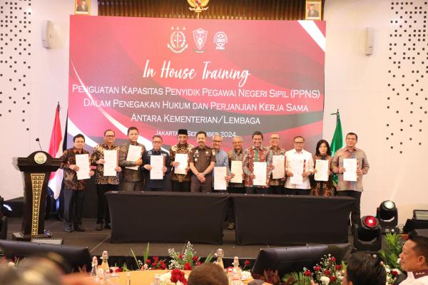 Jakarta – Kementerian Agraria dan Tata Ruang/Badan Pertanahan Nasional (ATR/BPN) bersama 12 kementerian/lembaga (K/L) lainnya melangsungkan penandatanganan Perjanjian Kerja Sama dengan Kejaksaan Agung Republik Indonesia, Selasa (03/09/2024). Kerja sama ini tentang Penguatan dan Sinergitas Penyidik Pegawai Negeri Sipil (PPNS) pada K/L terkait. Sekretaris Jenderal (Sekjen), Suyus Windayana menyebut perjanjian ini akan menjadi pedoman kerja sama bagi kedua belah pihak.