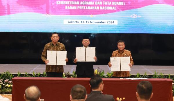 Jalinan kerja sama tersebut diresmikan dengan penandatanganan _Memorandum of Understanding_ (MoU) oleh Menteri ATR/Kepala BPN, Nusron Wahid dengan Menteri Pertahanan, Sjafrie Sjamsoeddin dan Kepala BIN, Muhammad Herindra.